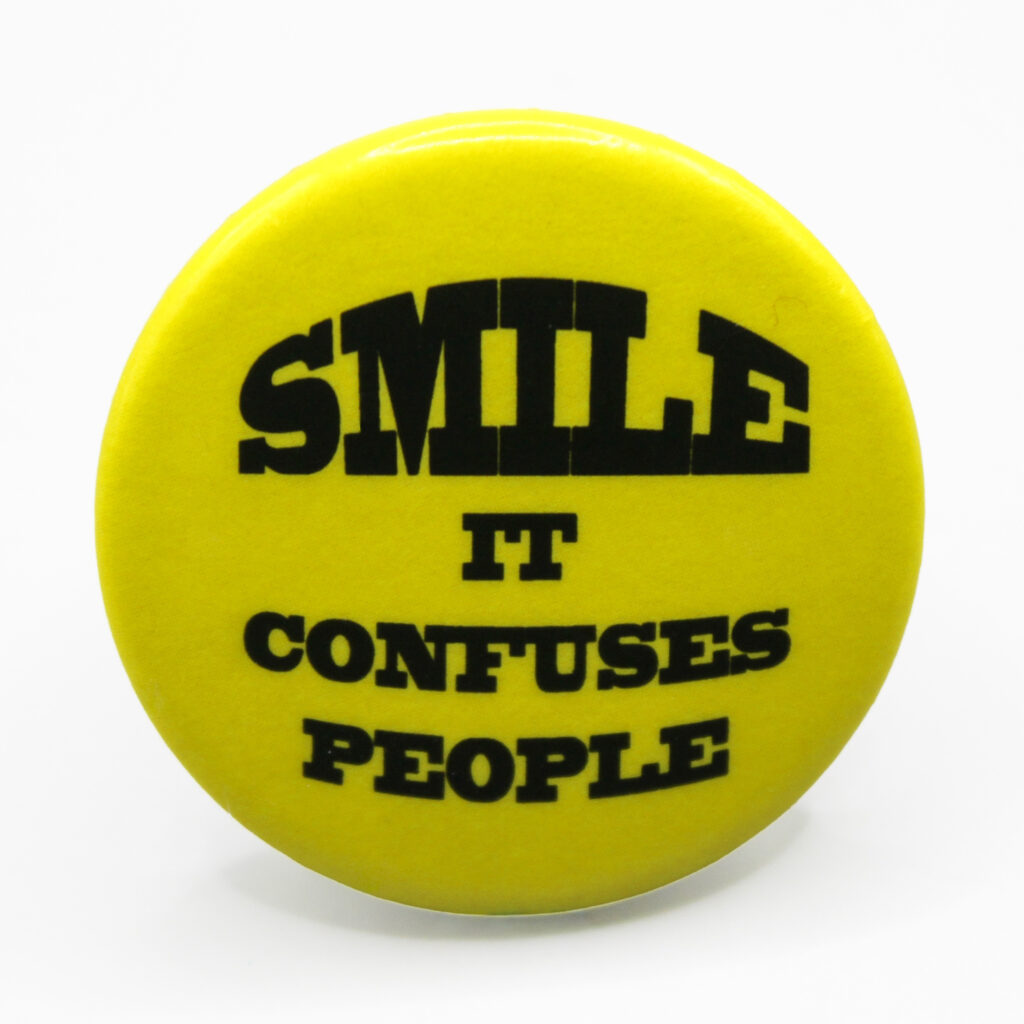 Years ago, I bought a space Yin Yang pin that sat untouched in my room for years. That changed in 2020 during a family trip to Disney, when an ice storm canceled our flight home and left us stuck in Kissimmee for two extra days. Exploring only what we could walk to, we wandered into a tourist shop filled with pins. One stood out: a bright yellow pin that read, “Smile, It Confuses People.” I bought it and pinned it to my jean jacket, where it became one of the first pins I ever wore.